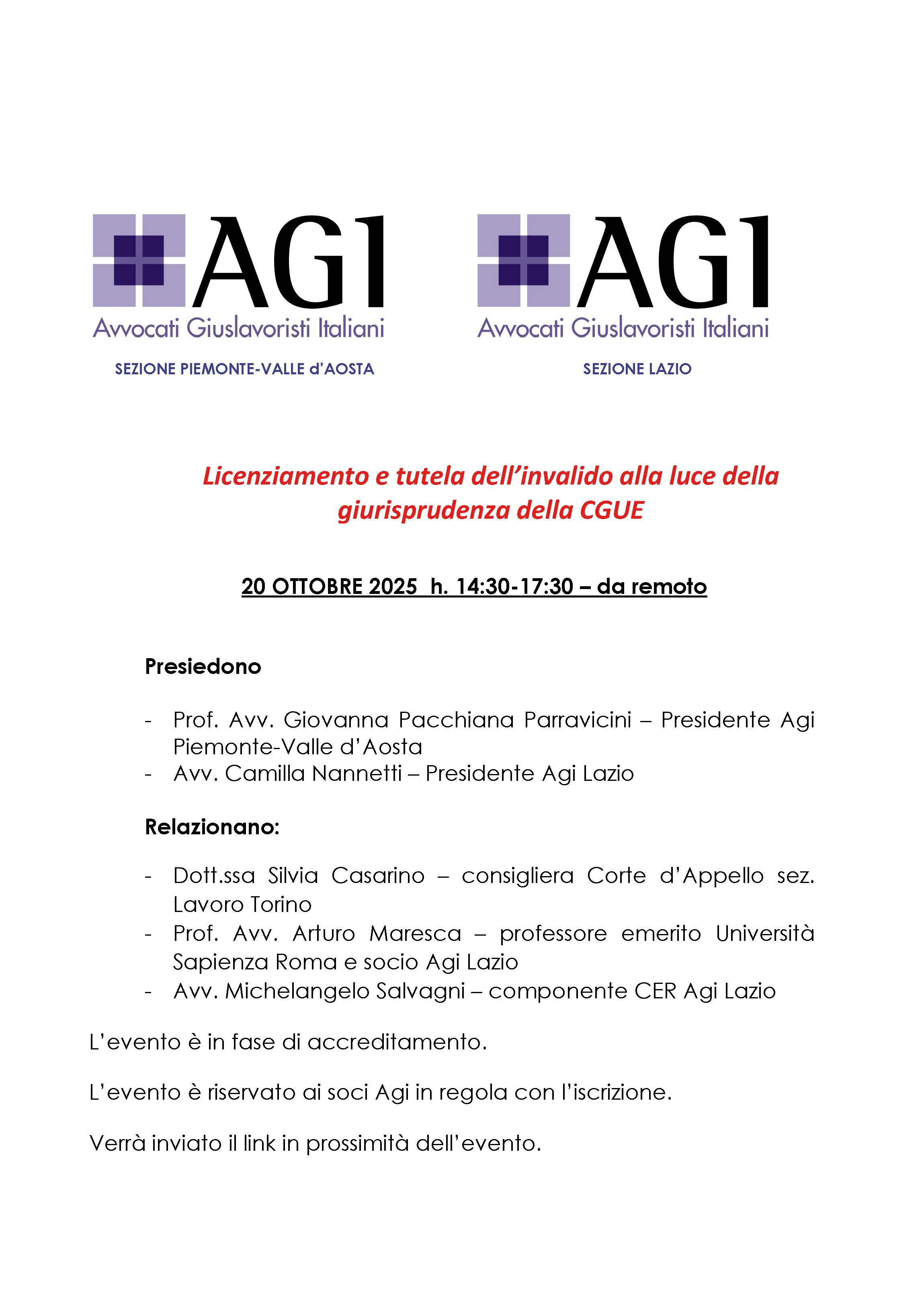 20.10.2025 Webinar "Licenziamento e tutela dell'invalido alla luce della giurisprudenza della CGUE"