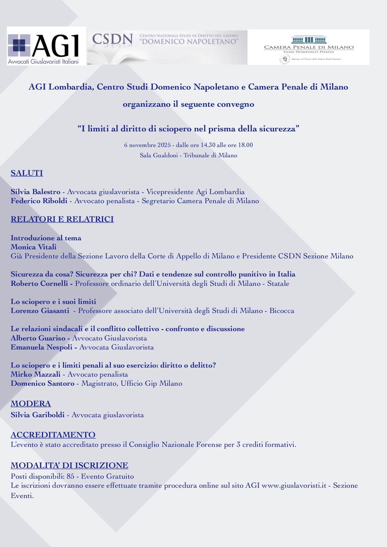 Convegno “I limiti al diritto di sciopero nel prisma della sicurezza”
