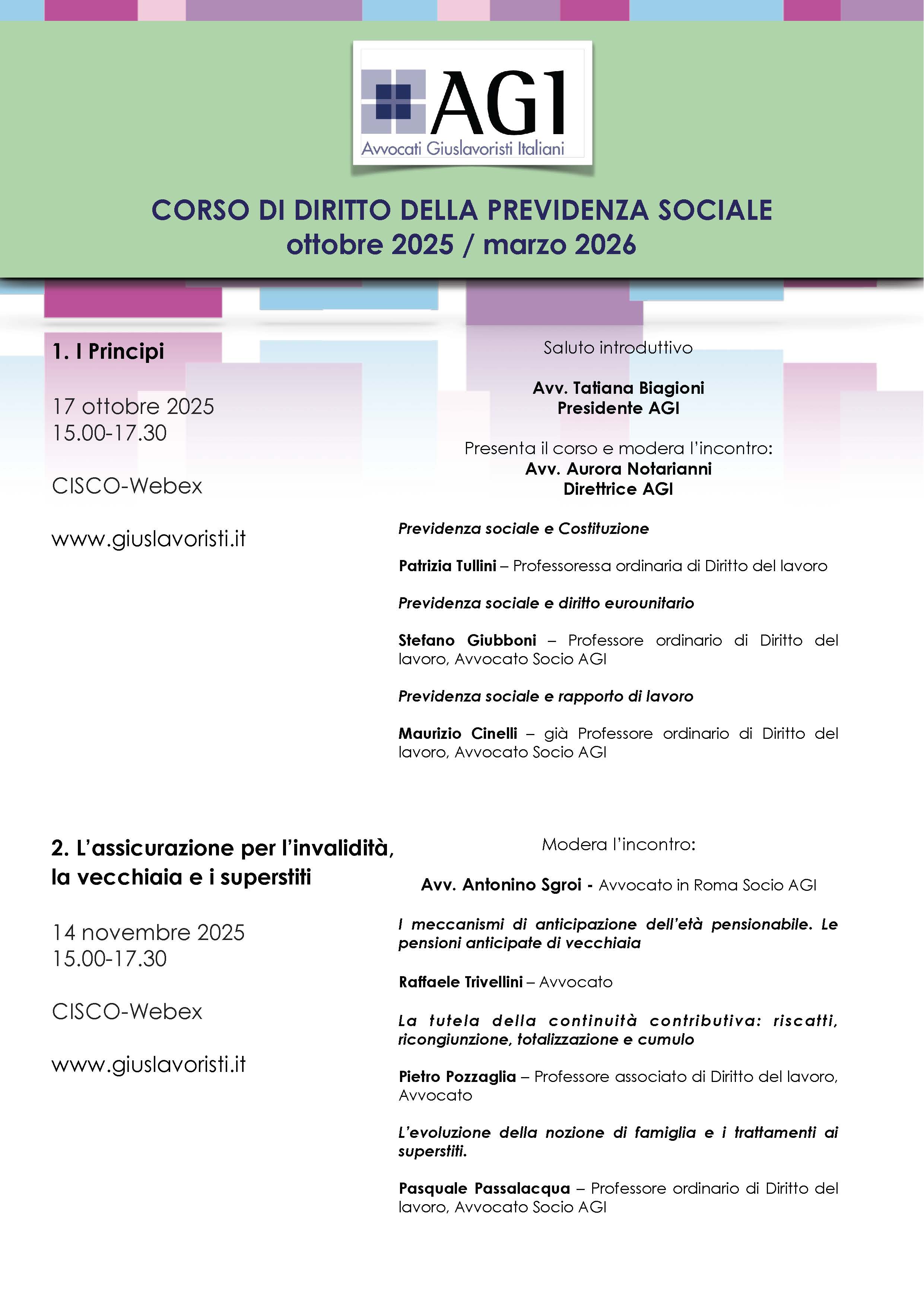 CORSO DI DIRITTO DELLA PREVIDENZA SOCIALE ottobre 2025 / marzo 2026